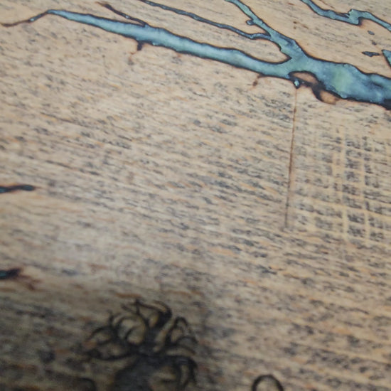 Chopping Board handmade from solid timber, featuring striking fractal burned patterns filled with shimmering turquoise epoxy resin. This board is not only practical but also a piece of art, designed to stand out in any kitchen.