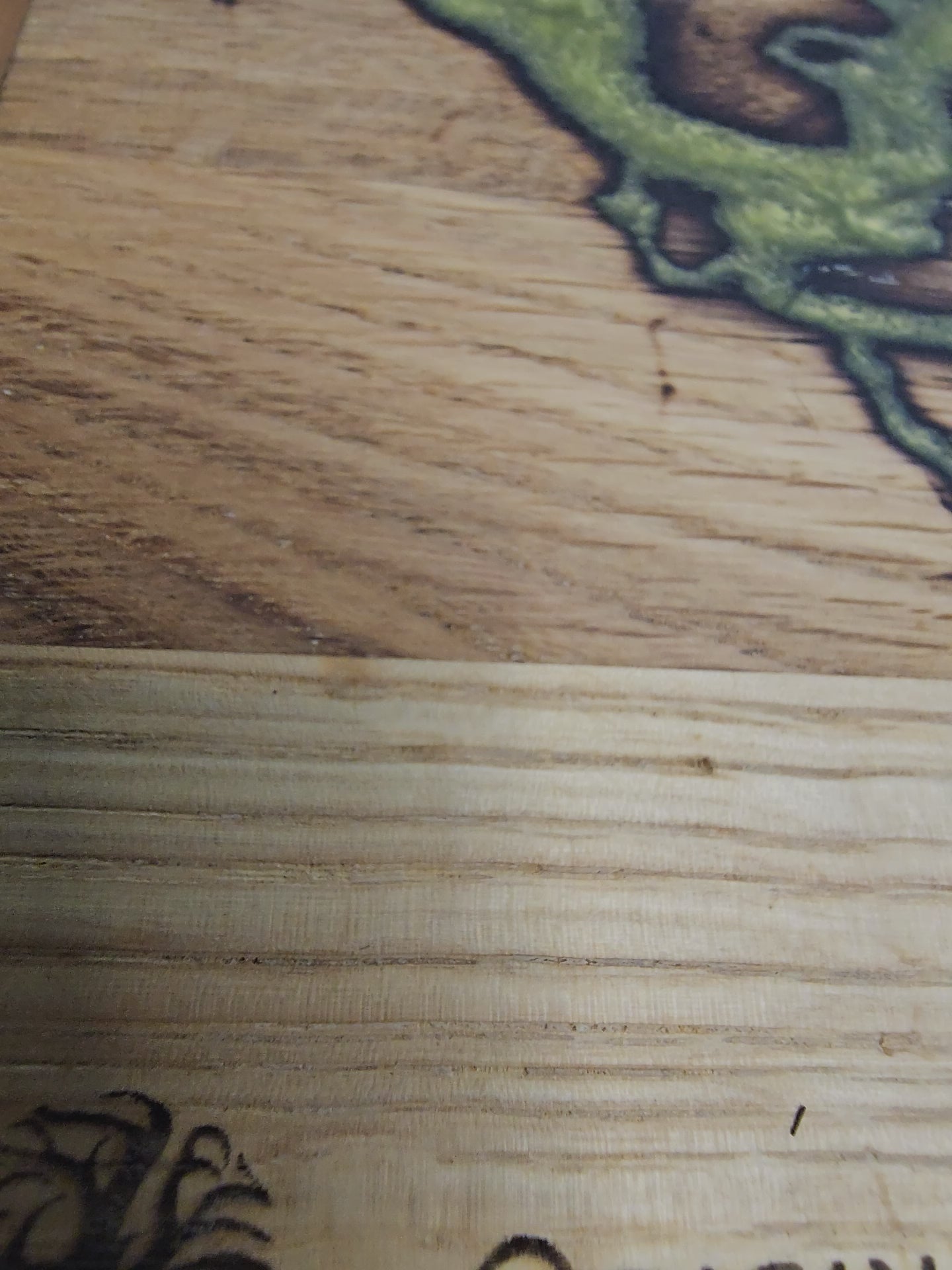 - Fractal burned lightning patterns with green epoxy resin inlay